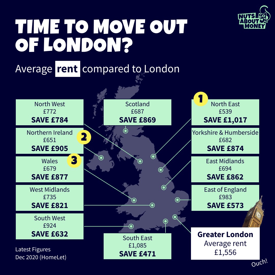 We’ve put together rent prices and savings across the whole of the UK below, could it be time to move out of London for renters?